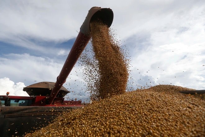 Thu hoạch đỗ tương tại trang trại ở Formosa, Goias, Brazil. (Ảnh: THX/TTXVN)