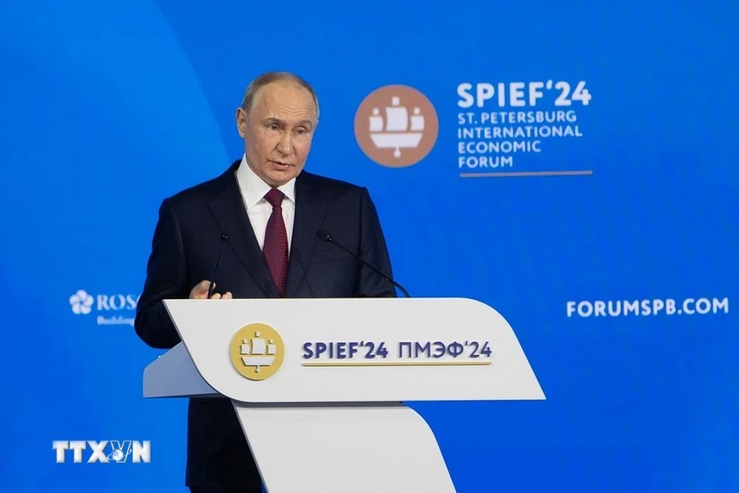 Tổng thống Nga Vladimir Putin phát biểu tại St. Petersburg, Nga, ngày 7/6. (Ảnh: THX/TTXVN)