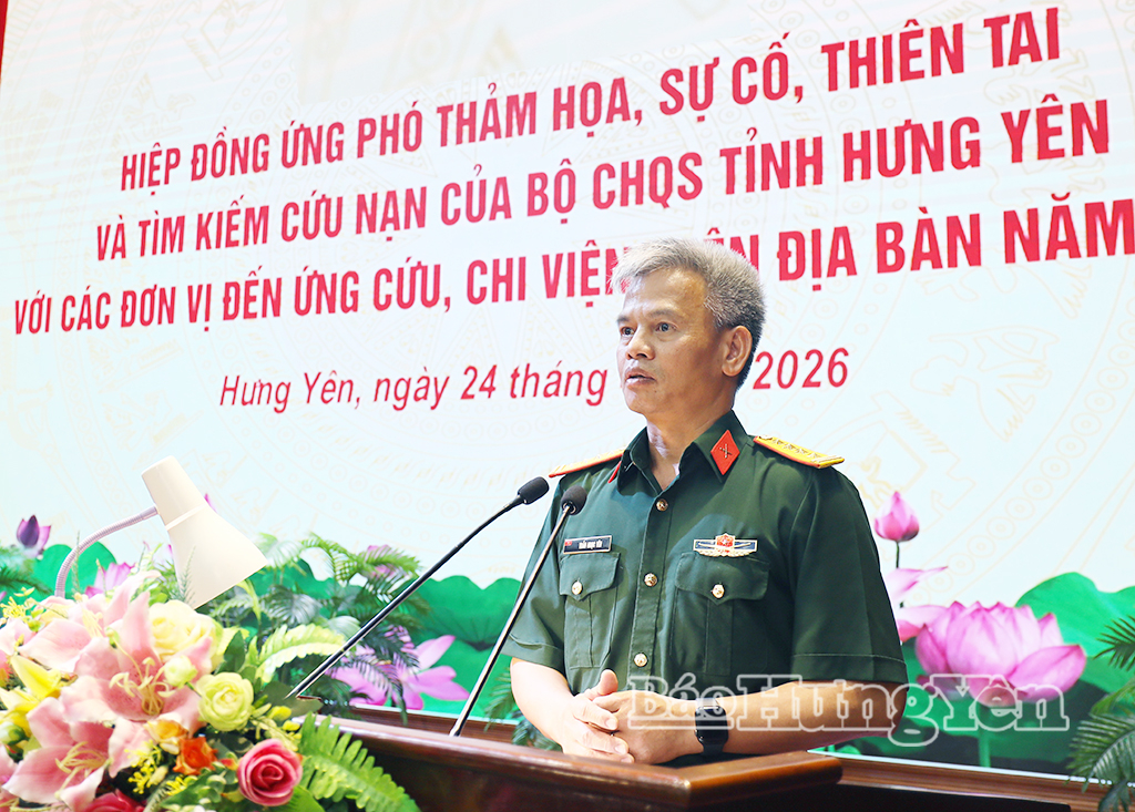 Phát biểu tại hội nghị, Đại tá Trần Ngọc Yên, Phó Tham mưu trưởng Quân khu 3 ghi nhận, biểu dương kết quả công tác phối hợp, hiệp đồng của Bộ CHQS tỉnh và các đơn vị thời gian qua. Đồng chí yêu cầu Bộ CHQS tỉnh tích cực phối hợp với các địa phương trong công tác phòng, chống thiên tai; thực hiện tốt công tác trực Tổng đài 112, bảo đảm trực 24/24 giờ; nắm chắc vật chất, trang bị, kịp thời bổ sung sẵn sàng thực hiện nhiệm vụ. Ban CHQS các xã có đê, kè trọng điểm cần hiệp đồng cụ thể với các đơn vị chi viện, ứng cứu bảo đảm chặt chẽ khi có tình huống; thường xuyên kiểm tra báo động, luyện tập các phương án phòng, chống thiên tai, tìm kiếm cứu nạn, không để bị động, bất ngờ trong mọi tình huống.