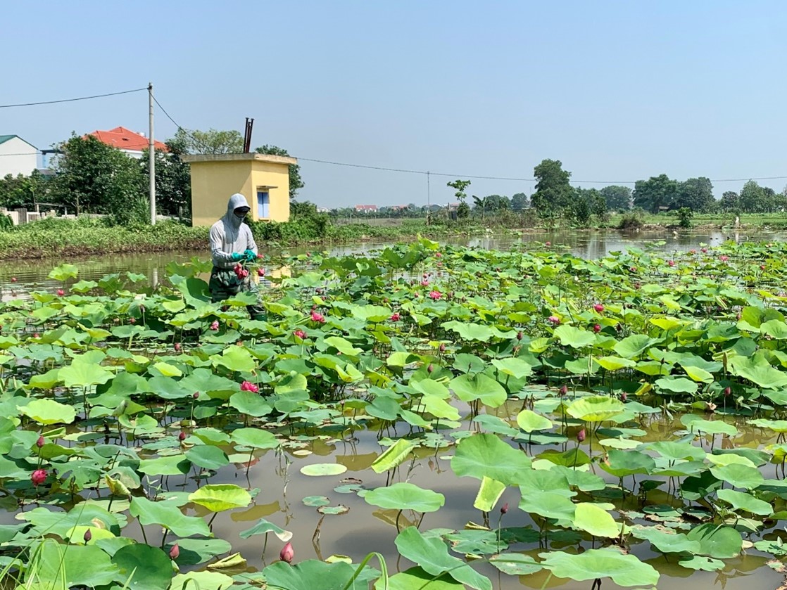 Mùa hè là thời điểm các hộ trồng sen vào chính vụ thu hoạch hoa sen, hạt sen thương phẩm. Lúc này, bạt ngàn bông sen hồng, sen trắng tỏa hương thơm mát thoang thoảng trong gió, muôn hoa khoe sắc tạo nên bức tranh làng quê đẹp thơ mộng, yên bình.
