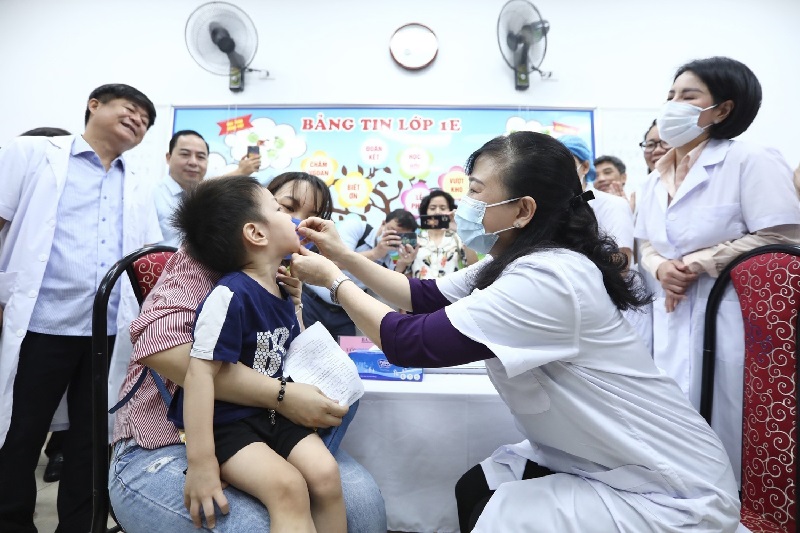 Ủy viên Trung ương Đảng, Bộ trưởng Bộ Y tế Đào Hồng Lan kiểm tra công tác tổ chức chiến dịch bổ sung vitamin A cho trẻ từ 6 đến 35 tháng tuổi tại phường Điện Biên, quận Ba Đình, thành phố Hà Nội _Ảnh: TTXVN