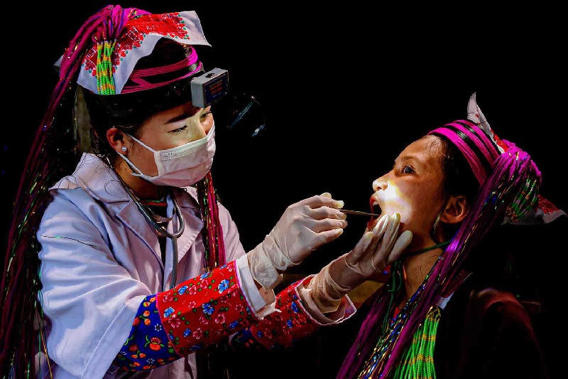Cô y tá thôn bản khám bệnh cho đồng bào _Ảnh: Tư liệu