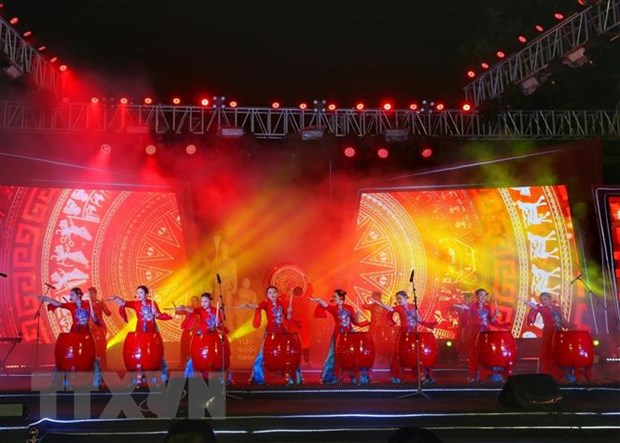 Chương trình nghệ thuật kỷ niệm 80 năm ra đời Đề cương về Văn hoá Việt Nam. (Ảnh: Tuấn Đức/TTXVN)