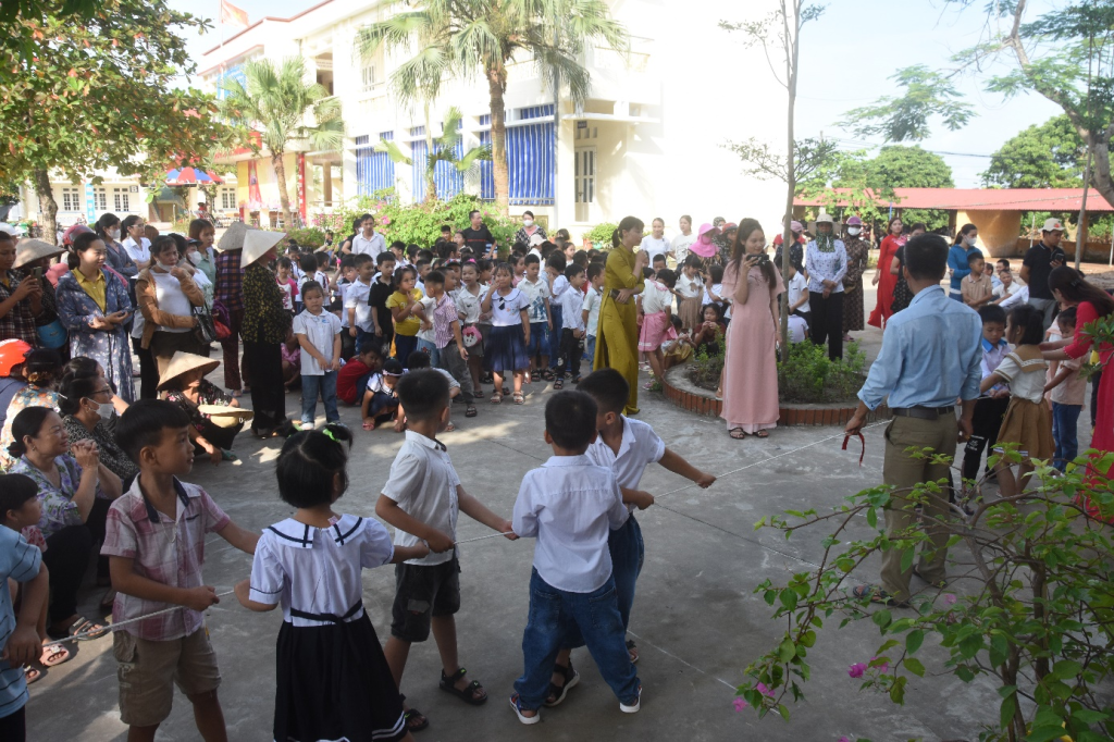 Tiểu học là bậc học tiền đề cho các cấp học sau này và ngày đầu tiên đi học sẽ để lại dấu ấn khó quên đối với nhiều học sinh. Vì thế, Trường tiểu học Tống Trân (Phù Cừ) đã chuẩn bị chu đáo từ tu bổ cơ sở vật chất, vệ sinh trường lớp, trang trí bảng, đến việc tổ chức đón học sinh lớp 1. Cô giáo Nguyễn Thanh Tâm, Hiệu trưởng Trường tiểu học Tống Trân cho biết: Năm học 2023-2024, nhà trường đón 130 học sinh lớp 1. Ngày đầu đón học sinh đến trường, nhà trường tổ chức lễ đón học sinh lớp 1 rất đầm ấm, vui vẻ với nhiều hoạt động tập thể như: Trò chơi kéo co, trò chơi gắp bóng, hoạt động văn nghệ, đố vui có thưởng để tạo hứng thú, niềm vui cho học sinh mỗi ngày đến trường. Với sự yêu thương, động viên của cha mẹ và sự quan tâm từ phía nhà trường, ngày đầu tiên đến lớp, các em học sinh lớp 1 của trường thích nghi với môi trường mới, sự bỡ ngỡ đã nhanh chóng qua đi, thay vào đó là khuôn mặt rạng ngời, ánh mắt háo hức chăm chú nghe từng lời dạy của cô giáo. Em Nguyễn Tuệ Minh, học sinh lớp 1A, Trường tiểu học Tống Trân cho biết: Lúc đầu em thấy rất hồi hộp nhưng khi đến cổng trường em được cô giáo đón chào bằng nụ cười thân thiện. Sau đó, em cùng các bạn trong lớp thi kéo co và được ăn bánh ngọt, được nhận quà, em thấy rất thích.