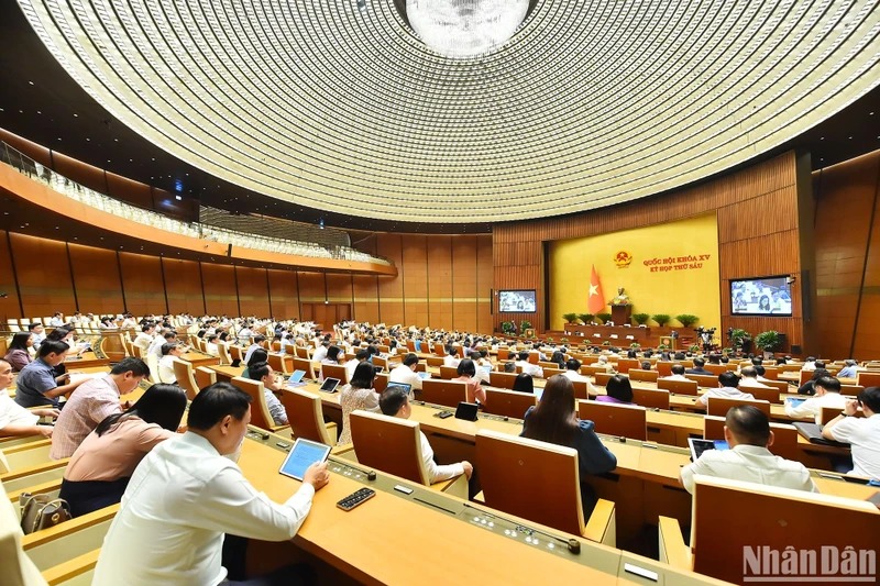Quang cảnh một phiên thảo luận ở hội trường tại Kỳ họp thứ 6, Quốc hội khóa XV. (Ảnh: DUY LINH)