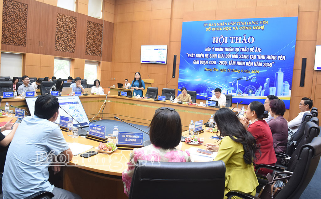 Sáng ngày 22/4, Sở Khoa học và Công nghệ tổ chức hội thảo góp ý hoàn thiện dự thảo Đề án “Phát triển hệ sinh thái đổi mới sáng tạo tỉnh Hưng Yên giai đoạn 2026 – 2030, tầm nhìn đến năm 2045”.