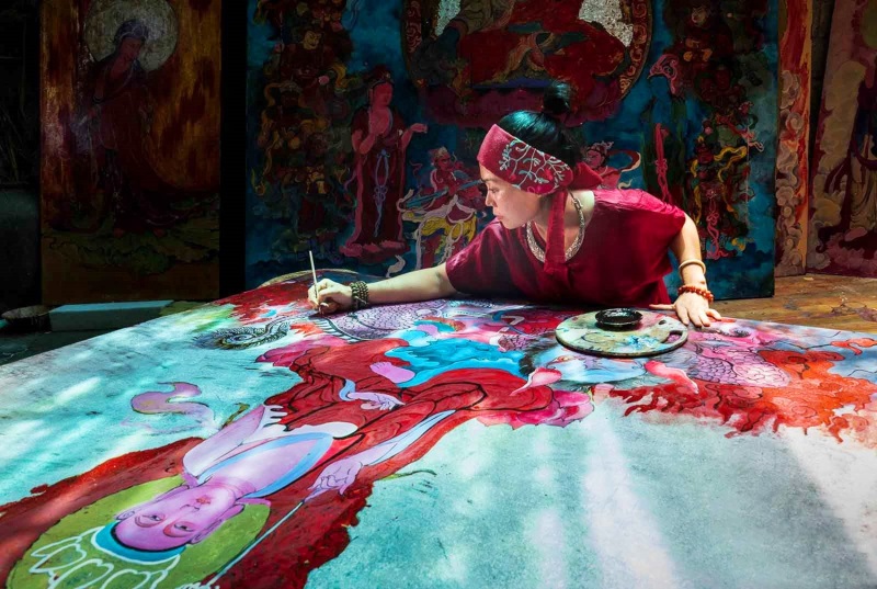 Nét vẽ tài hoa của nghệ nhân làng sơn mài Hạ Thái (tác giả: Nguyễn Thị Minh Hải) _Nguồn: Tư liệu