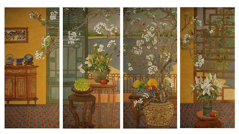 Tác phẩm "Mùa xuân chín"của họa sĩ Vũ Thùy Mai tại triển lãm mỹ thuật “Ngộ”, tháng 9/2023. (Ảnh: Ban tổ chức)