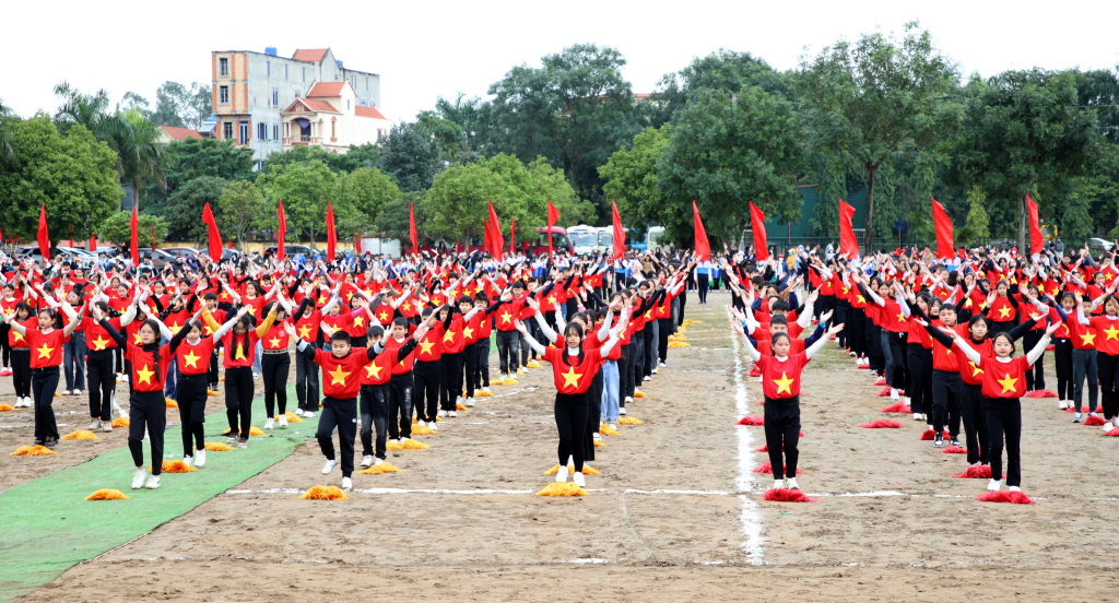 Tại lễ khai mạc, trên 1.600 học sinh, vận động viên trong huyện đã tham gia lễ diễu hành, biểu dương lực lượng; lãnh đạo huyện và các vận động viên thực hiện nghi lễ rước đuốc, thắp lửa truyền thống. Cùng với đó là không khí sôi nổi, tưng bừng của các màn đồng diễn thể dục nhịp điệu của các trường học.