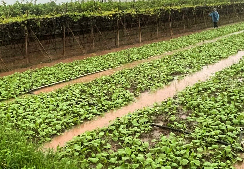 Theo ghi nhận của các địa phương, một số diện tích rau màu nước ngập ngang mặt luống; một số cây rau màu mới trồng, cây non bị dập nát, thối rễ…