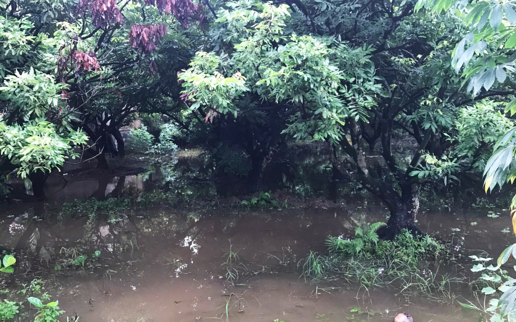 Những vườn chuyên canh trồng nhãn ở xã Hồng Nam (thành phố Hưng Yên) bị ngập nặng