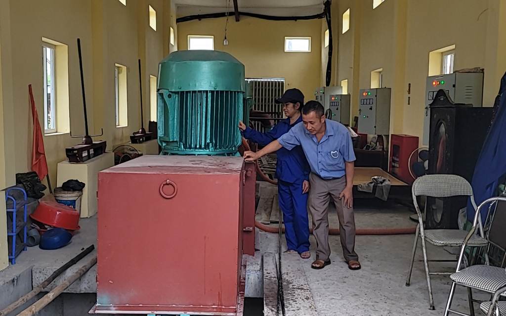 Xí nghiệp Khai thác công trình thuỷ lợi Châu Giang kiểm tra hoạt động của Trạm bơm Nghi Xuyên