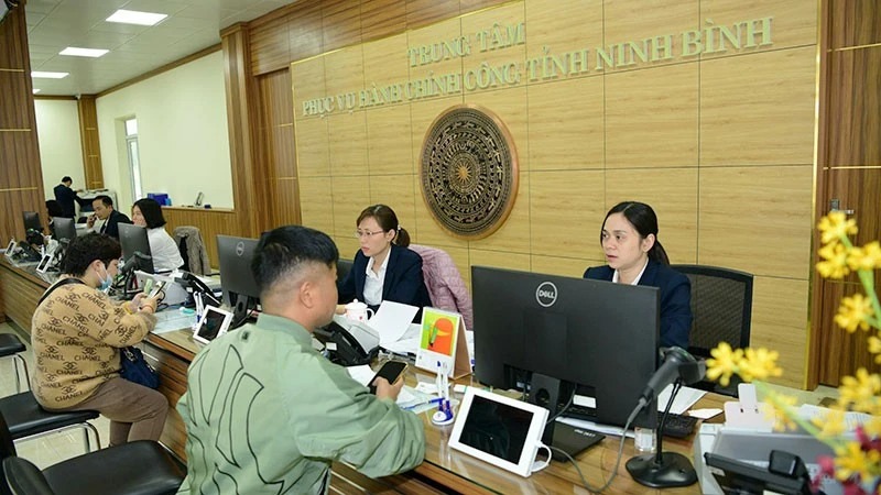 Người dân đến làm thủ tục hành chính tại Trung tâm Phục vụ hành chính công tỉnh Ninh Bình.