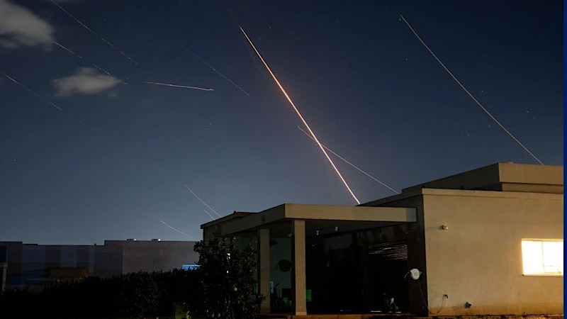 Tên lửa phóng từ Iran tới khu vực biên giới phía bắc Israel, ngày 1/10/2024. (Ảnh: THX/TTXVN)