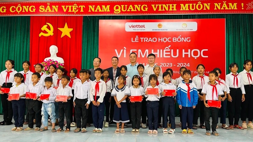 50 học sinh hoàn cảnh đặc biệt khó khăn của huyện Lạc Dương và huyện Đam Rông được trao học bổng dịp này. (Ảnh: Hội Khuyến học tỉnh Lâm Đồng)