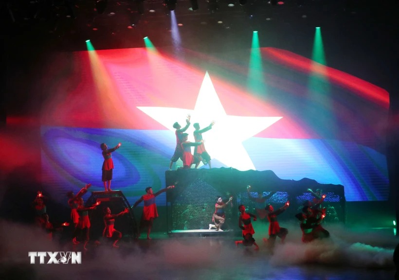 Một tiết mục thi diễn của Đoàn nghệ thuật quần chúng Bộ Tư lệnh Thành phố Hồ Chí Minh. (Ảnh: Xuân Khu/TTXVN)