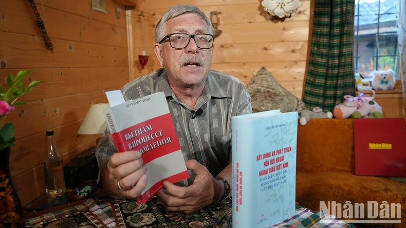 Phó Giáo sư Piotr Tsvetov, Phó Chủ tịch thứ nhất Hội Hữu nghị Nga-Việt trả lời phỏng vấn phóng viên Báo Nhân Dân tại Liên bang Nga. Ảnh: Xuân Hưng