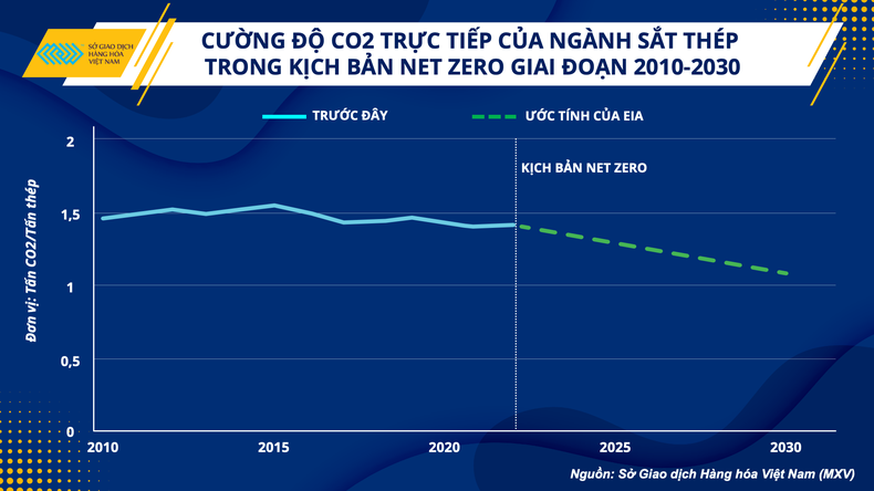Theo Cơ quan Năng lượng Quốc tế (IEA), trong thập kỷ qua, tổng lượng khí thải CO2 từ ngành sắt thép đã tăng lên, phần lớn là do nhu cầu thép tăng lên. Cường độ CO2 trực tiếp từ quá trình sản xuất thép thô đã giảm nhẹ trong vài năm qua, nhưng các nỗ lực cần phải được đẩy nhanh để có thể đáp ứng lộ trình trong kịch bản không phát thải ròng của ngành vào năm 2050.