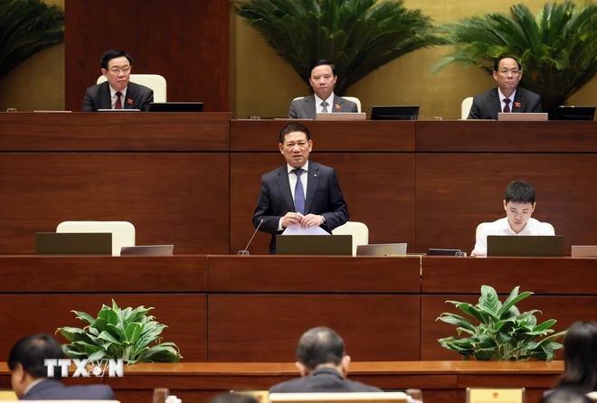 Bộ trưởng Bộ Tài chính Hồ Đức Phớc trả lời chất vấn của đại biểu Quốc hội. (Ảnh: An Đăng/TTXVN)