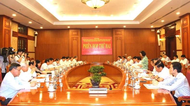 Sáng 15/4, Phiên họp thứ hai Ban Chỉ đạo Tổng kết một số vấn đề lý luận và thực tiễn về công cuộc đổi mới theo định hướng xã hội chủ nghĩa trong 40 năm qua ở Việt Nam đã diễn ra tại Hà Nội. Đồng chí Trương Thị Mai, Ủy viên Bộ Chính trị, Thường trực Ban Bí thư, Trưởng Ban Tổ chức Trung ương, Phó Trưởng Ban Thường trực Ban Chỉ đạo chủ trì phiên họp.