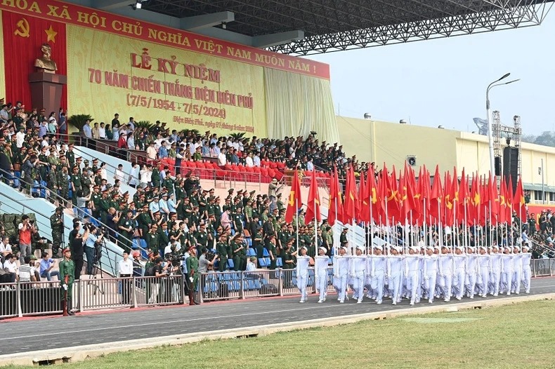 Lực lượng của Bộ Công an tham gia có 2 khối đứng trên sân và 9 khối diễu binh, diễu hành. Lực lượng của tỉnh Điện Biên có 3 khối nghi trượng, khối nữ dân quân các dân tộc Tây Bắc và các khối diễu hành quần chúng, cùng 20 khối đứng làm nền trên sân.