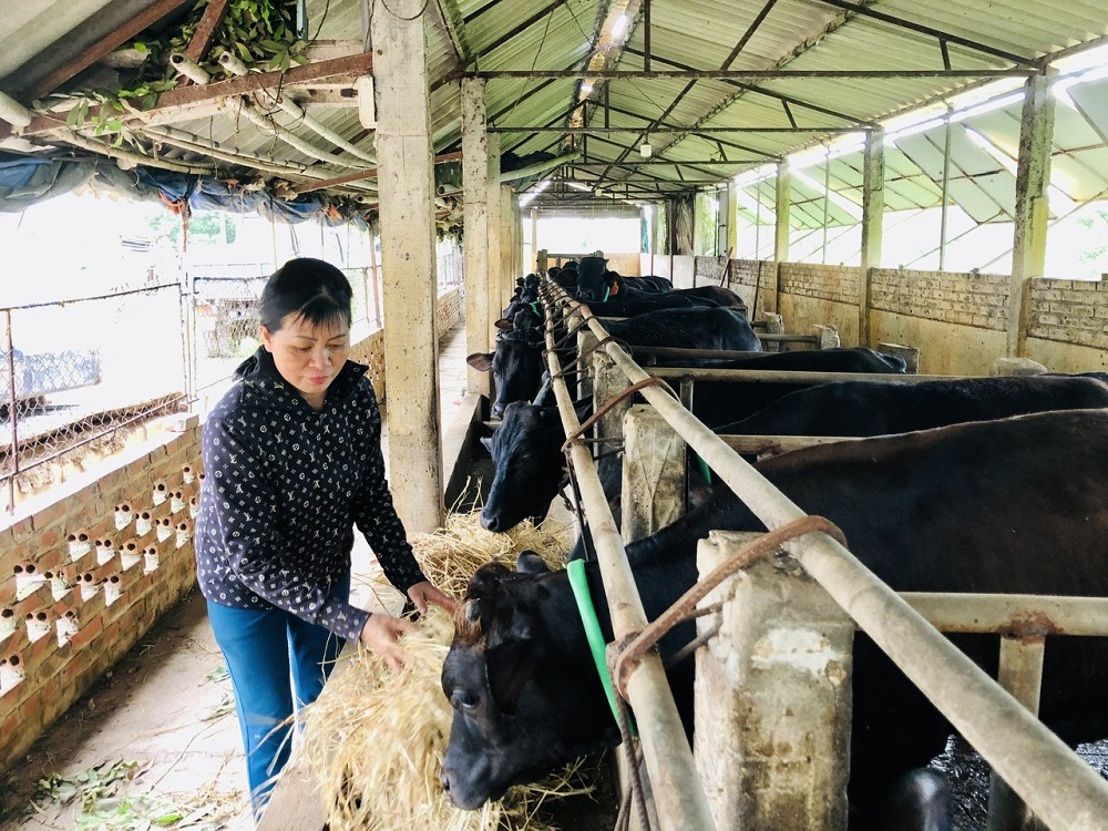 Để chủ động nguồn thức ăn cho đàn bò và giảm chi phí đầu tư thức ăn công nghiệp, gia đình chị Tem trồng 6 mẫu cỏ voi, thuê người đi thu gom rơm (khoảng 50 mẫu). Đồng thời, thực hiện tiêm đầy đủ vắc xin phòng bệnh, thường xuyên vệ sinh và phun khử trùng chuồng trại. Nhờ đó, đàn bò phát triển tốt, ít bị dịch bệnh, cho thu nhập ổn định.