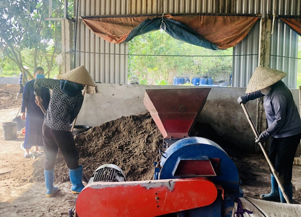 Chất thải từ gia súc, gia cầm được vận chuyển về khu vực sản xuất của hợp tác xã, sau đó được xử lý cho bớt ẩm, rồi trộn vi sinh và ủ với nhiệt độ cao để loại bỏ mùi hôi, các mầm bệnh và vi sinh vật có hại cho cây trồng. Để tìm kiếm thị trường, chị Ánh tặng phân bón cho các hộ nông dân cấy lúa, trồng cây ăn quả trên địa bàn…