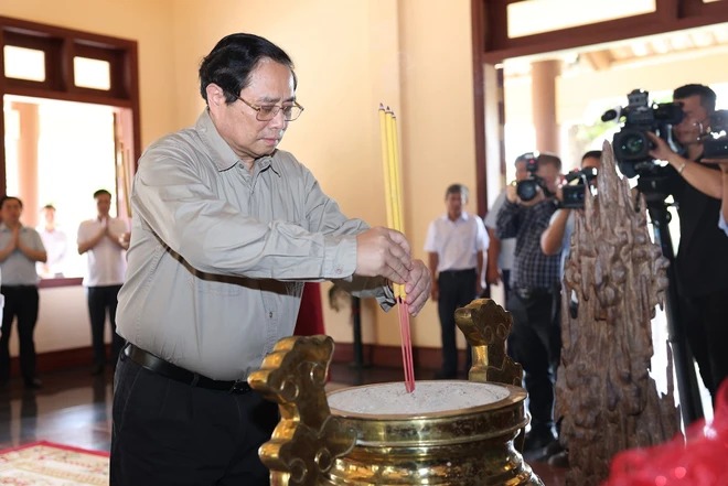 Dâng hương, dâng hoa tại Khu lưu niệm Chủ tịch Hội đồng Bộ trưởng Phạm Hùng ở ấp Long Thuận A, xã Long Phước, huyện Long Hồ, tỉnh Vĩnh Long, Thủ tướng Chính phủ Phạm Minh Chính và đoàn công tác đã thành kính dâng hoa, dâng hương, dành phút mặc niệm để tưởng nhớ công ơn Chủ tịch Hội đồng Bộ trưởng Phạm Hùng.