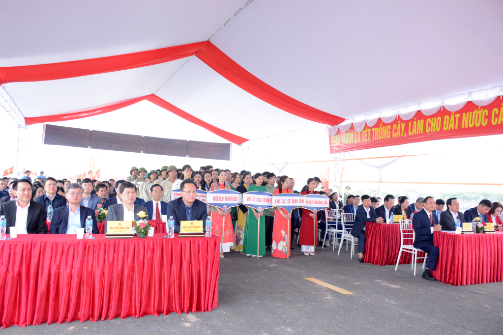 Huyện yêu cầu các cơ quan, đơn vị, xã, thị trấn chủ động xây dựng kế hoạch thực hiện, phấn đấu trồng đạt và vượt kế hoạch huyện giao. Sau lễ phát động, các đại biểu đã trồng cây tại tuyến đường ĐH.65 đoạn qua thôn Đông Bạn, xã Cẩm Ninh.