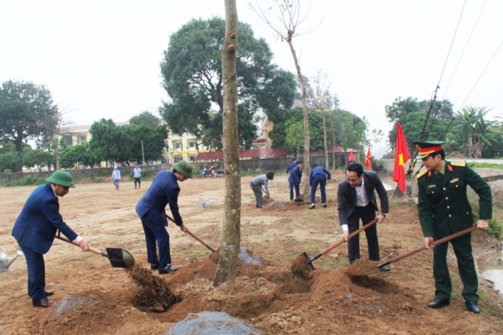 Năm 2024, huyện phấn đấu trồng 5.600 cây xanh các loại, chủ yếu là cây bóng mát, cây đô thị nhằm đẩy nhanh tiến độ hoàn thiện tiêu chí cảnh quan môi trường nông thôn mới nâng cao, nông thôn mới kiểu mẫu.