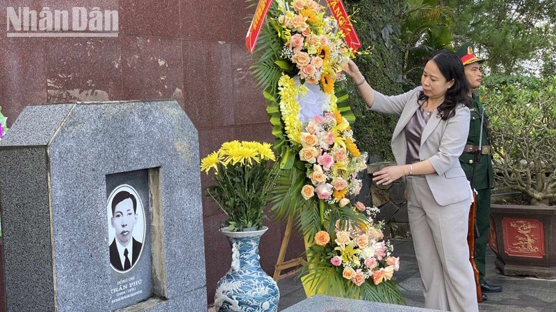 Phó Chủ tịch nước Võ Thị Ánh Xuân dâng hoa tại khu mộ cố Tổng Bí thư Trần Phú.