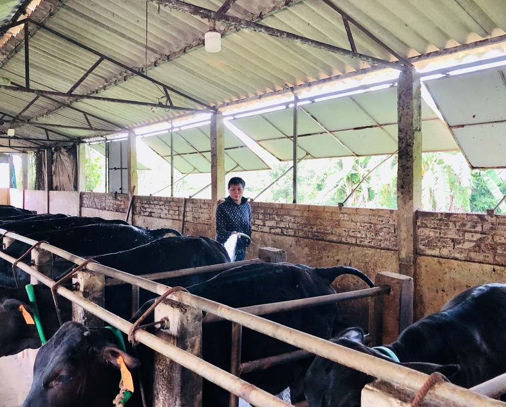 Hội viên phụ nữ thôn Trà Phương chăm sóc đàn bò