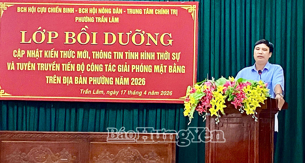 Chiều ngày 17/4, Hội Cựu chiến binh, Hội Nông dân phường Trần Lãm phối hợp với Trung tâm Chính trị phường tổ chức lớp bồi dưỡng, cập nhật kiến thức, tập huấn nghiệp vụ và tuyên truyền về công tác giải phóng mặt bằng năm 2026.