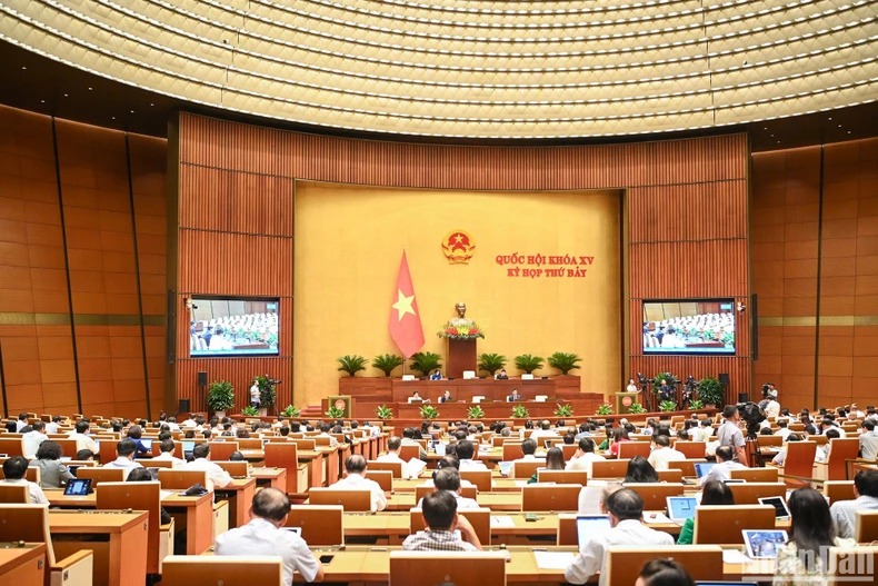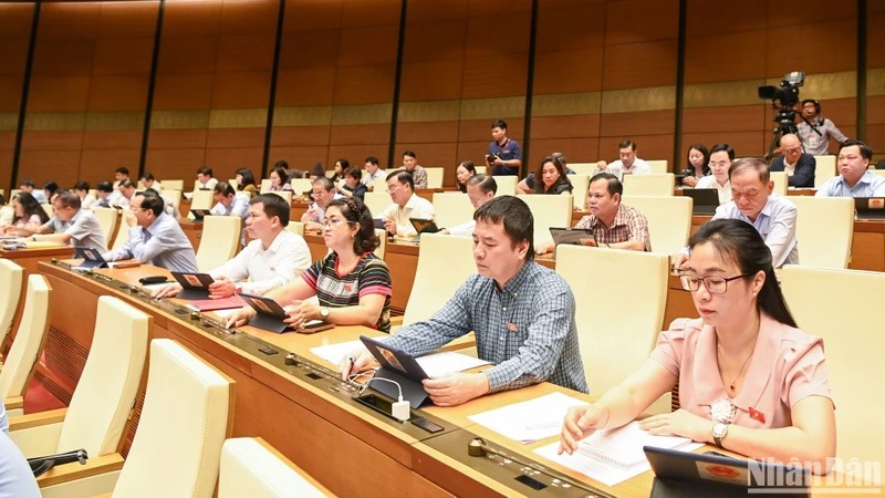 Các đại biểu Quốc hội biểu quyết thông qua Nghị quyết phê chuẩn văn kiện gia nhập CPTPP của Liên hiệp Vương quốc Anh và Bắc Ireland. (Ảnh: DUY LINH)
