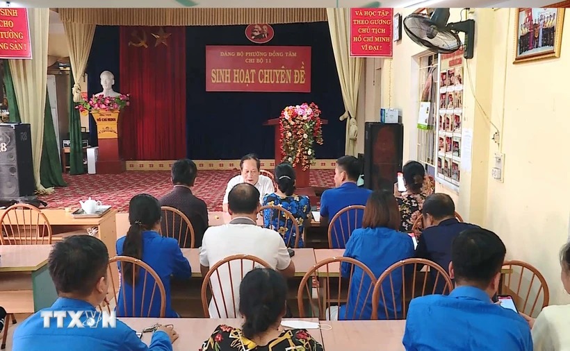 Một buổi sinh hoạt chuyên đề của Chi bộ 10, phường Đồng Tâm, thành phố Yên Bái, tỉnh Yên Bái. (Ảnh: Việt Dũng/ TTXVN)