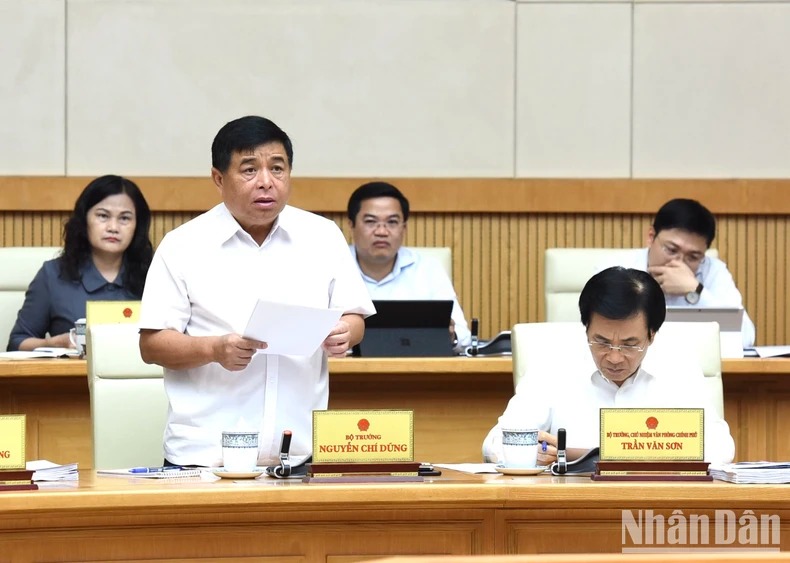 Bộ trưởng Kế hoạch và Đầu tư Nguyễn Chí Dũng phát biểu ý kiến tại Phiên họp Chính phủ thường kỳ tháng 7. (Ảnh: TRẦN HẢI)