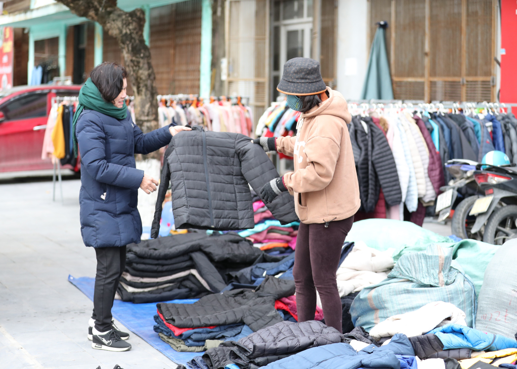 Người dân mua áo chống rét tại một của hàng bán quần áo trên đường Điện Biên