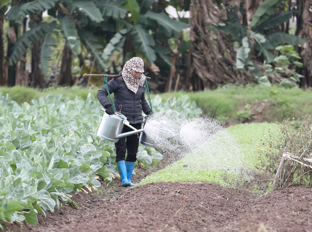 Nông dân xã Văn Nhuệ (Ân Thi) ra đồng chăm sóc cây vụ đông