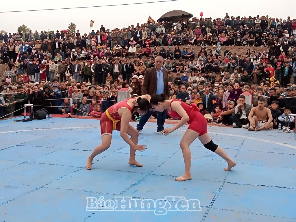 Du xuân ở các vùng quê trong tỉnh, khách thập phương còn được hòa mình vào lễ hội với các trò chơi dân gian độc đáo đặc trưng của từng vùng như: Múa rồng, múa lân, thi cầu kiều, kéo co, cờ tướng ở lễ hội văn hóa dân gian Phố Hiến (thành phố Hưng Yên); chọi gà, đấu vật, đánh cờ ở đình Thanh Cù, xã Ngọc Thanh (Kim Ðộng); vật lầu ở hội đình Quan Xuyên, xã Nguyễn Huệ (Khoái Châu)… Ở một số lễ hội trong tỉnh còn diễn lại những sự tích gắn liền với nguồn gốc, giai đoạn lịch sử của địa phương như: Tích “Mẹ nghèo chiến thắng hổ dữ” ở lễ hội đền An Xá, xã An Viên (Tiên Lữ); tích chèo cổ “Tống Trân - Cúc Hoa” ở lễ hội đền Tống Trân, xã Tống Trân (Phù Cừ)…