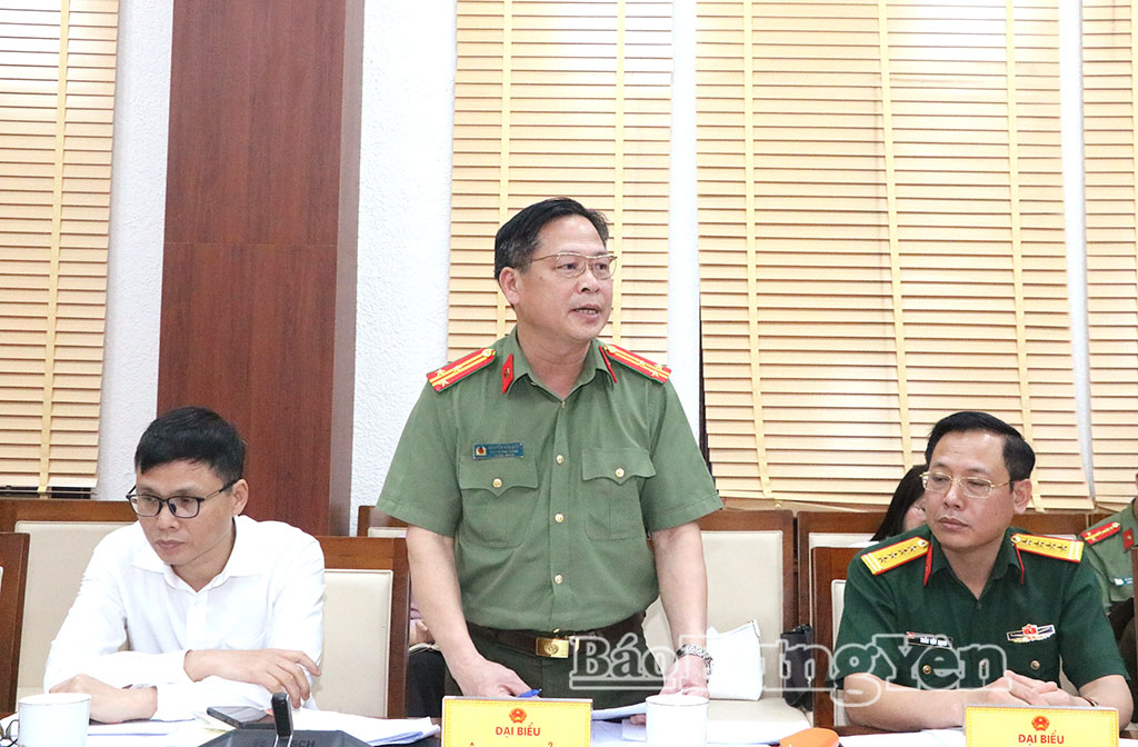 Đại diện Công an tỉnh phát biểu tại cuộc họp.