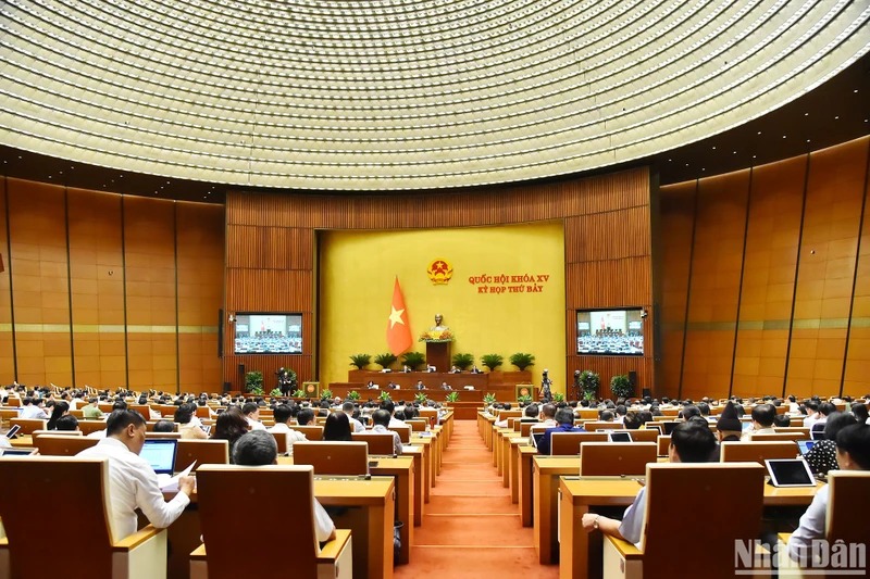 Quang cảnh phiên họp ở hội trường tại Kỳ họp thứ 7, Quốc hội khóa XV. (Ảnh: THỦY NGUYÊN)