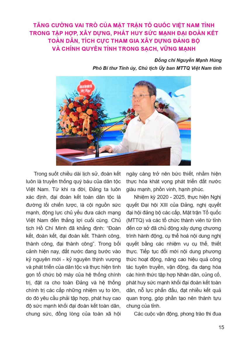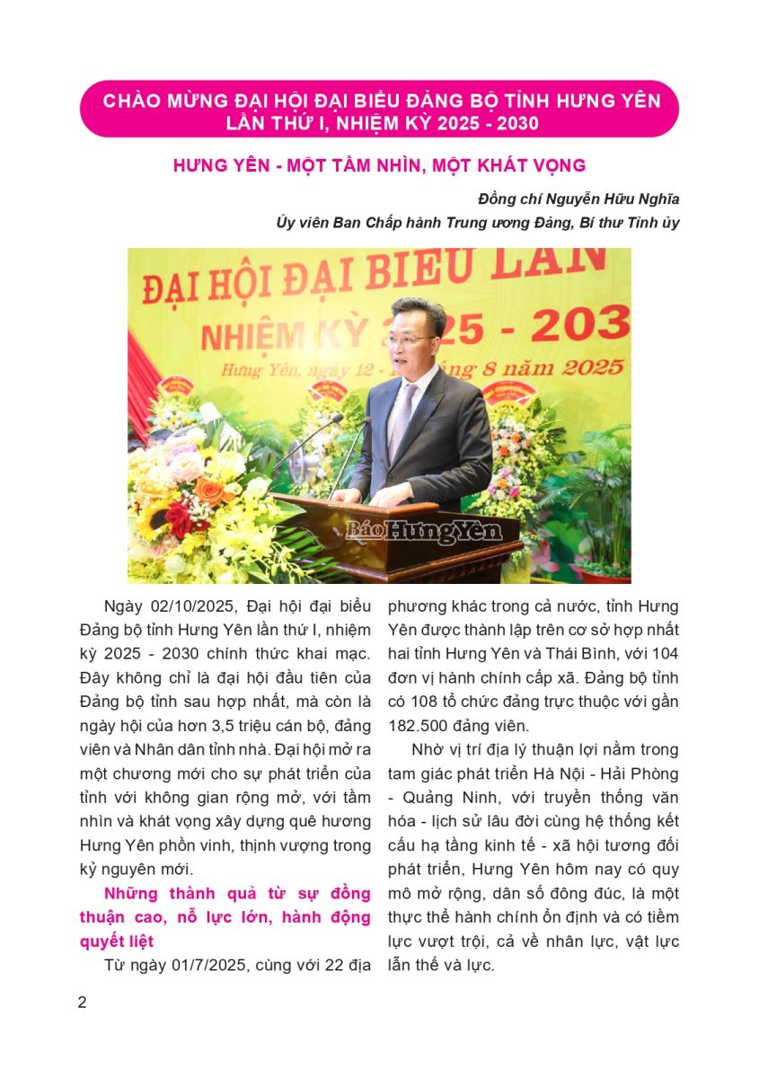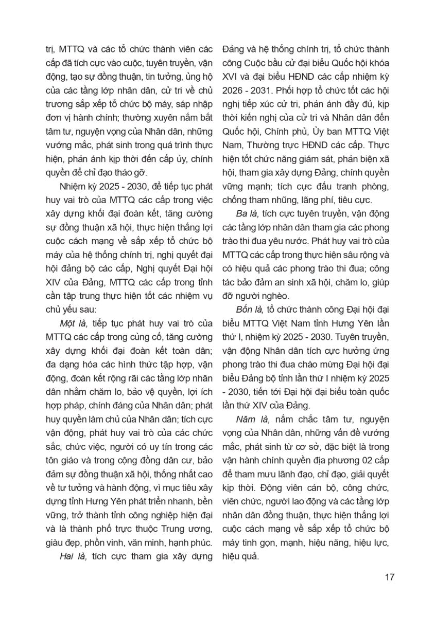 CHÀO MỪNG ĐẠI HỘI ĐẠI BIỂU MẶT TRẬN TỔ QUỐC VIỆT NAM TỈNH HƯNG YÊN LẦN THỨ I, NHIỆM KỲ 2025 - 2030.