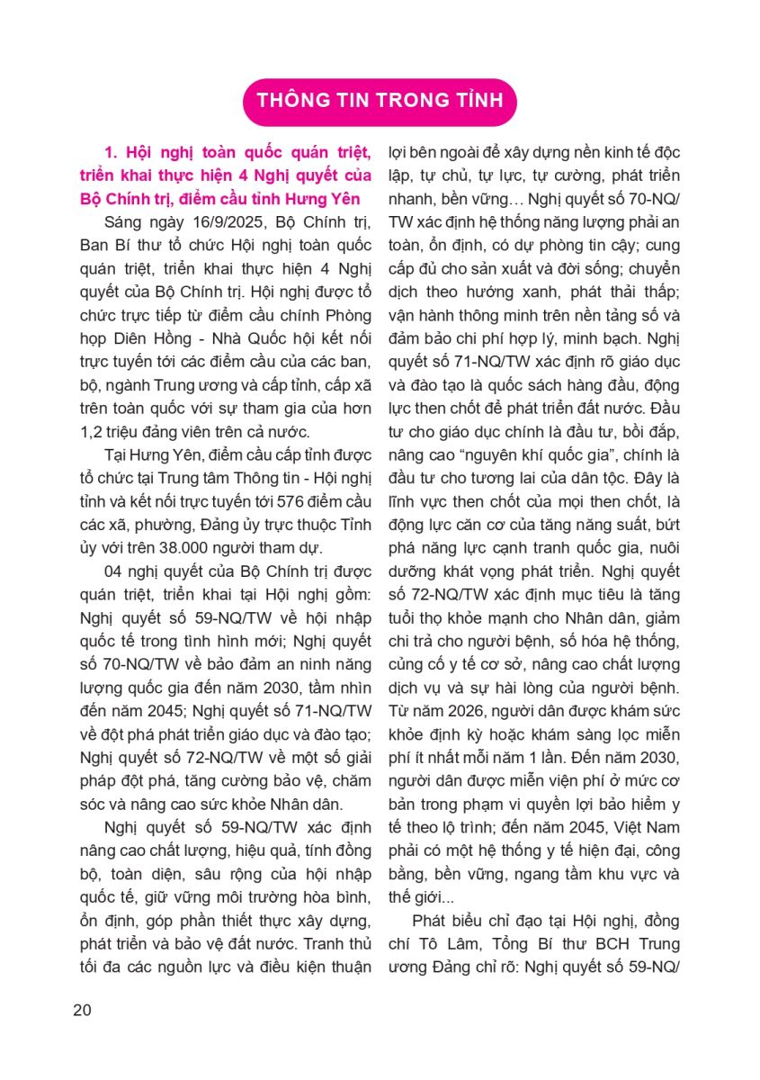 Tin trong tỉnh