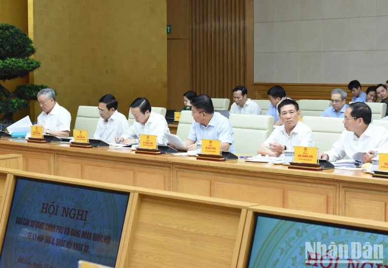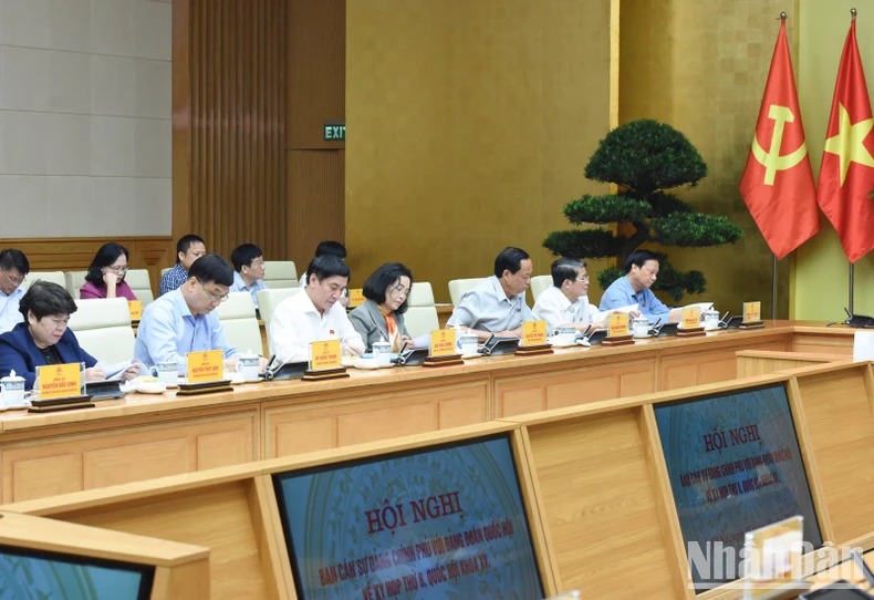 Phát biểu ý kiến, Thủ tướng Phạm Minh Chính nêu rõ, đây là hội nghị thứ hai giữa Ban Cán sự đảng Chính phủ với Đảng đoàn Quốc hội để chuẩn bị cho Kỳ họp thứ 8, cũng là một sự đổi mới, vì trước Kỳ họp có tới 2 hội nghị chuẩn bị và chuẩn bị sớm so trước đây. Thủ tướng đánh giá các phát biểu tại Hội nghị thể hiện tinh thần trách nhiệm cao, tính xây dựng rất rõ ràng, tính chiến đấu rất cao, quyết liệt, mạnh mẽ, đúng như chỉ đạo của Tổng Bí thư, Chủ tịch nước Tô Lâm "chỉ bàn làm, không bàn lùi", đã nói là làm, đã cam kết là thực hiện.