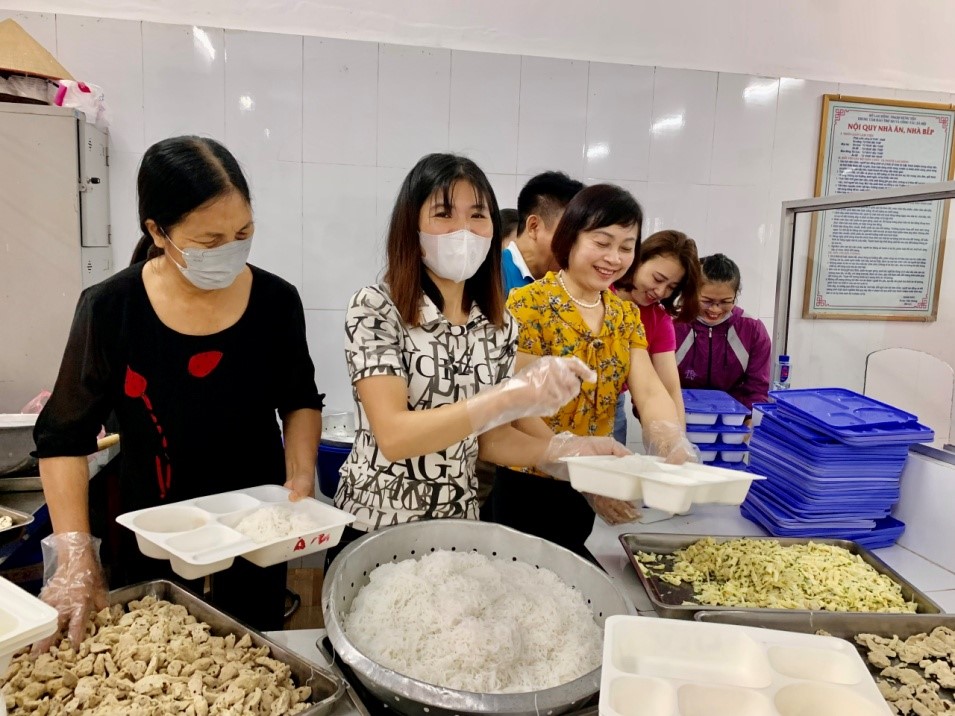 Tình nguyện viên nấu ăn thiện nguyện cho người có hoàn cảnh khó khăn tại Trung tâm Bảo trợ xã hội và Công tác xã hội tỉnh