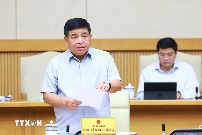 Bộ trưởng Bộ Kế hoạch và Đầu tư Nguyễn Chí Dũng báo cáo tình hình kinh tế-xã hội tháng 9 và 9 tháng năm 2024. (Ảnh: Dương Giang/TTXVN)