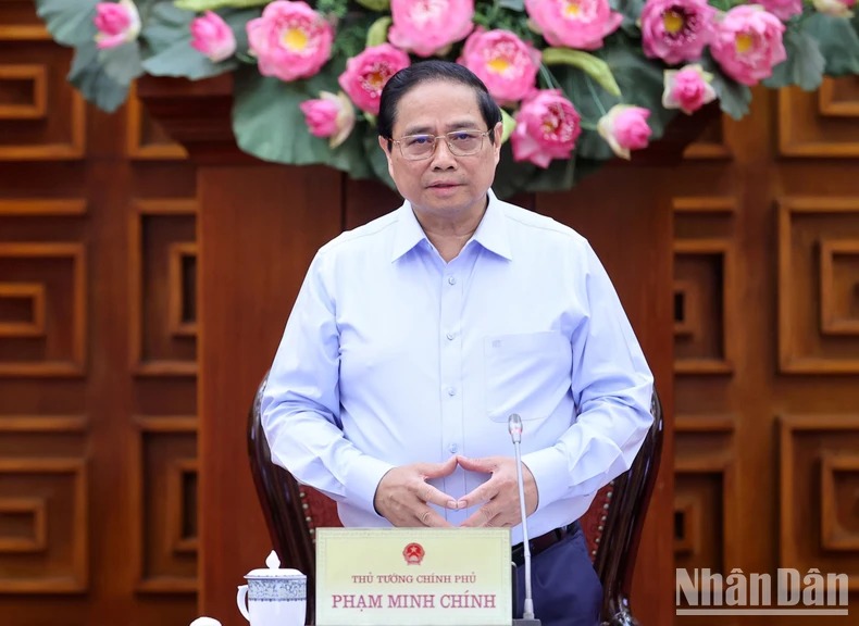 Thủ tướng Phạm Minh Chính phát biểu ý kiến chỉ đạo cuộc họp. (Ảnh: Trần Hải).