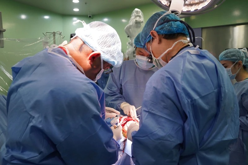 Các bác sĩ thực hiện ca phẫu thuật. (Ảnh TRƯỜNG GIANG)