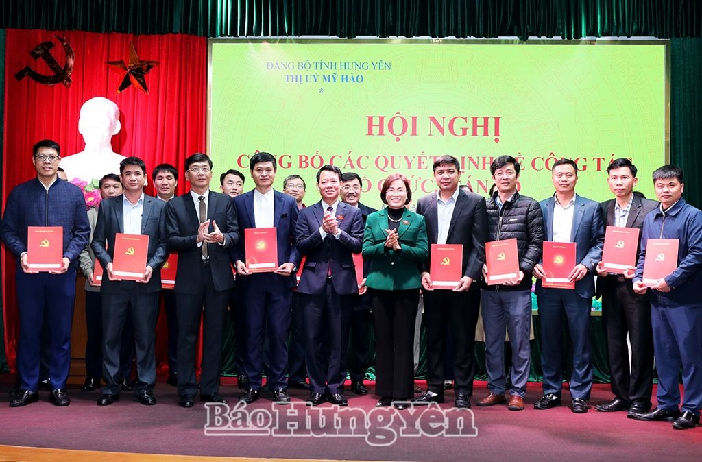 Ngày 19/2, Ban Thường vụ Thị ủy Mỹ Hào tổ chức hội nghị công bố các quyết định của Thị ủy, Ban Thường vụ Thị ủy, quyết định của UBND thị xã về sắp xếp tổ chức bộ máy và công tác cán bộ. Dự hội nghị có đồng chí Trần Thị Thanh Thủy, Ủy viên Ban Thường vụ Tỉnh ủy, Bí thư Thị ủy Mỹ Hào.