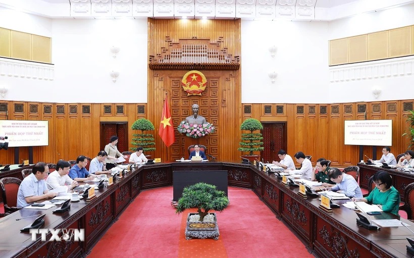 Thủ tướng Phạm Minh Chính chủ trì phiên họp lần thứ nhất Ban Chỉ đạo tổng kết 20 năm thực hiện mô hình tổ chức bộ máy của Chính phủ. (Ảnh: Dương Giang/TTXVN)